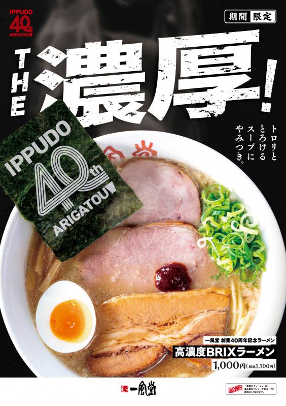2025年10月16日(木)より、創業40周年記念メニューとして「高濃度BRIXラーメン」と「U400」を店舗・期間限定にて販売いたします。一風堂が40年間向き合ってきたとんこつラーメンの「二つの進化のかたち」を体感していただけます。
