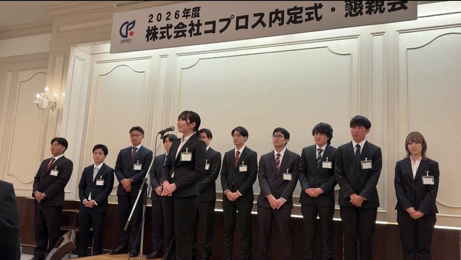 株式会社コプロス(⼭⼝県下関市、代表取締役社⻑:宮﨑薫、以下「コプロス」)は、10月1日(水)に本社にて令和8年4月入社予定の新卒内定者を対象とした内定式を実施しました。応募者378名から選ばれた13名の内定者が参加し、コプロスが独自開発した「施工管理体験ゲーム」を体験しました。