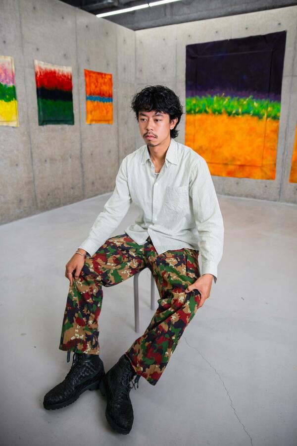 渡邉太地は、絵画を「空間をひらく装置」と捉え、「どこでも窓」というテーマのもと、抽象的な風景画を制作しています。窓というフレームを通して、目に見える景色にとどまらず、その場に漂う気配や、身体を通して感じるエネルギーまでも表現しています。