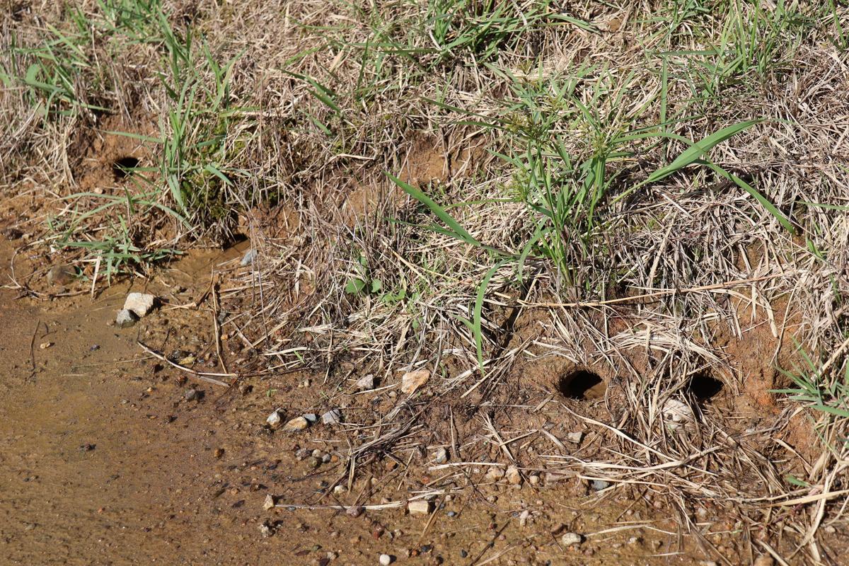 阿賀野川河川事務所によると、下山ポンプ場排水樋門前の堤防では、大雨時にカニの巣穴から堤防内の土砂が流出する被害が確認されていた。堤防の安全性とカニの生育環境を確保するため、堤防にある巣穴をいったん埋めてプラスチック製ネットで覆い、盛り土をしてカニの新たなすみかにすることにした。