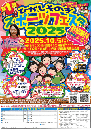 元オリンピックマラソンランナーの千葉真子さんも来場! 今年度初開催!「ひがしそのぎスポーツフェスタ2025」を開催します! 日 程:2025年10月5日(日)10:00~15:30(受付 9:30~)
