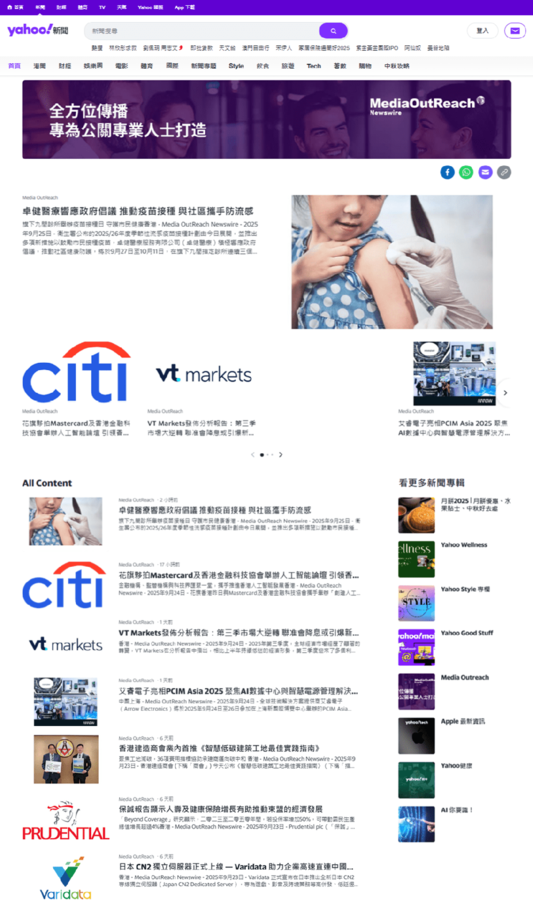 国際プレスリリース配信サービスとして初めて、香港で高い信頼を得るデジタルニュースプラットフォームであるYahooに専用ページを確保し、SEO、GEO、AI検索における露出を強化