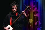 三味線を演奏する史佳Fumiyoshiさん=2024年5月、上越市