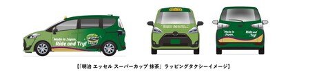 「明治 エッセル スーパーカップ 抹茶」ラッピングタクシー運行