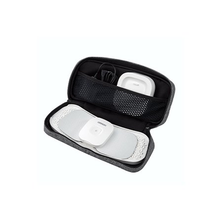 専用のスマートフォンアプリ(無料)を用いて、好みに応じたモードや強さを手元で操作することが可能なコードレスタイプの低周波治療器です。本体とパッドをつなぐコードがないので移動中や仕事中でも「ながら」治療が可能です。また持ち運びやすさを考えてデザインされたコンパクトサイズの専用収納ケースで、本体と充電器や充電ケーブルをあわせて持ち運べます。外出先、遠征先で好きなタイミングでセルフケアを行えます。