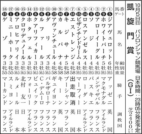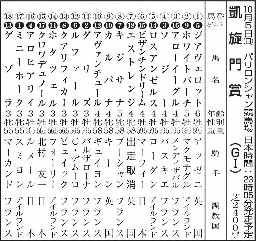 第104回凱旋門賞(5日・パリロンシャン競馬場2400m芝18頭、GⅠ)