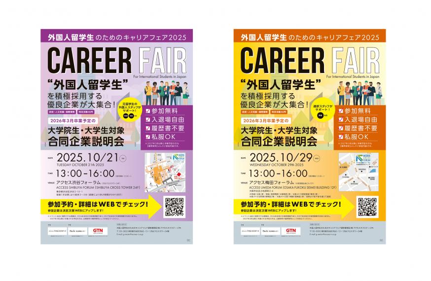 外国人に特化し、住まい・就労・通信・金融など日本での暮らしを支えるサービスを包括的に提供する株式会社グローバルトラストネットワークス(本社:東京都豊島区、代表取締役社長:後藤裕幸、以下「GTN」)は、株式会社学生情報センターおよび株式会社アクセスネクステージとともに、日本での就職を希望する外国人留学生を対象とした合同企業説明会「外国人留学生のためのキャリアフェア2025」を共催いたします。東京会場は2025年10月21日(火)、大阪会場は10月29日(水)に開催し、積極的に外国人留学生を採用する企業の人事担当者が参加します。