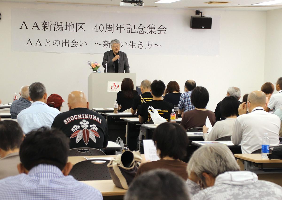 「会社をサボって酒を飲んでいたら子どもに見つかって、逆ギレしてしまった」「ストレスがあると食事は食べず酒に逃げ、気づいたときには体重が37キロになっていた」…。9月末、アルコール依存症患者の自助グループAA(アルコホーリクス・アノニマス)の県内活動40周年を記念するイベントが新潟市江南区で開かれました。県内外からメンバーや医療関係者ら約70人で埋まった会場では、メンバーが依存症に苦しんだ過去や依存症の怖さについて話しました。