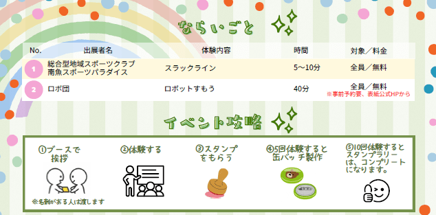 キャラクターとの撮影会や物販、スタンプラリーなど。