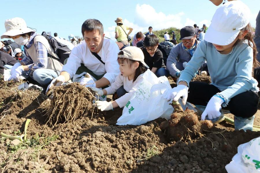 午前9時から。サトイモ掘り体験のほか、サトイモ汁や新米おにぎりを楽しめる人気イベント。サトイモ掘りは当日受け付けで先着1200人。