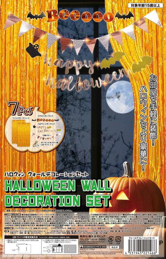 スペシャルオーナメントセットと組み合わせてよりハロウィン感がゴージャスにUPするようフリンジカーテンやLEDライト・ガーランドを1セットに!配信や動画の背景としてもおすすめです!