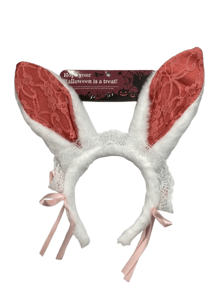小顔効果が狙えるように顔周りにリボンやパールの飾りがついています。耳中はレースでファッションにもあわせやすい!