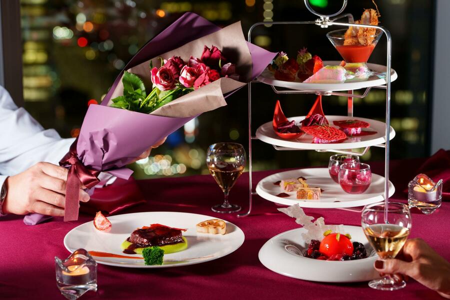 花束やプレゼントに添える想いとともに、まばゆい夜景、料理、お飲み物で、喜びに満ちた聖夜をお過ごしください。