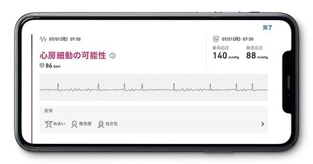 ・スマートフォンアプリ「OMRON connect(オムロンコネクト)」で心電図波形を解析。「心房細動の可能性」など6パターンの解析結果をお知らせ
