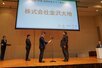 続いて、認定証の授与が行われ、201団体の中から「一般財団法人 セブン-イレブン記念財団」「株式会社金沢大地」「鹿島市長及び連携活動実施者5団体のうち音成めだかの楽校」の三組が代表で登壇し、認定証と記念楯を受け取りました。
