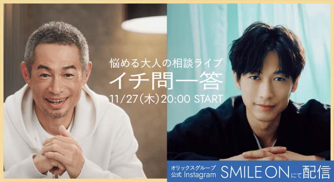 オリックス株式会社(本社:東京都港区、社長:髙橋 英丈)は、オリックスグループ公式Instagram アカウント「SMILE ON」(@orix_smile_on)にて、悩める大人の相談ライブ「イチ問一答」第4弾を2025年11月27日(木)20時から生配信しますので、お知らせします。