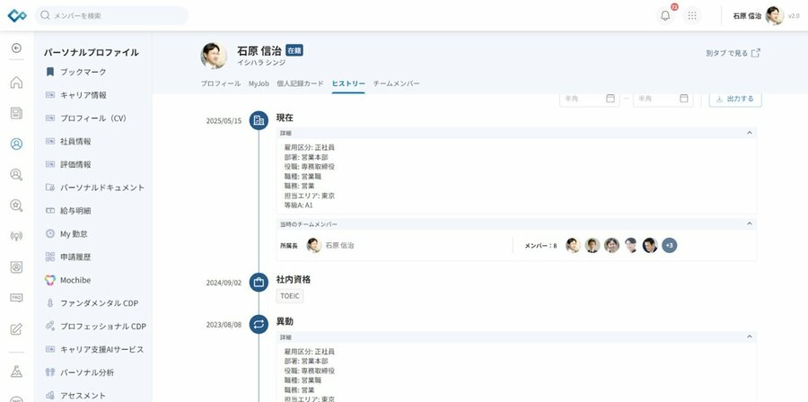 ▲従業員の情報を一元的に管理する「パーソナルプロファイル」