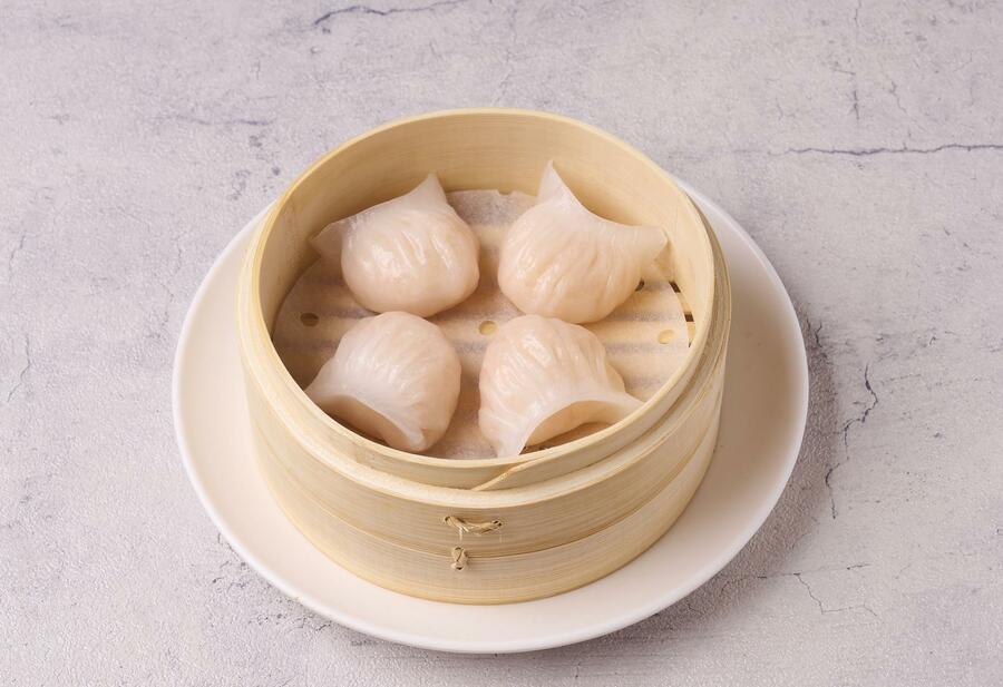 透き通った水晶のような皮に海老が贅沢に詰まった究極の一品。