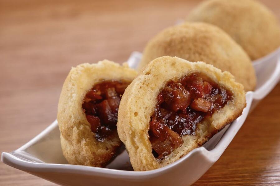 生地で叉焼(チャーシュー)餡を包んだ「添好運」を代表するメニュー。