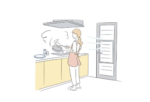 匂いや湿気がこもりがちなキッチン。ドアを開けっぱなしにすると、虫や防犯上の不安も。採風機能付きの勝手口ドアに取替えることで、カギをかけたまま換気ができます。