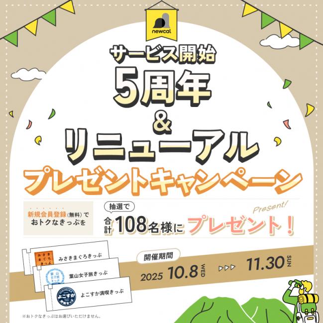 期間中にnewcalに会員登録をした方を対象に,抽選で108名さまにおトクなきっぷをプレゼントいたします。