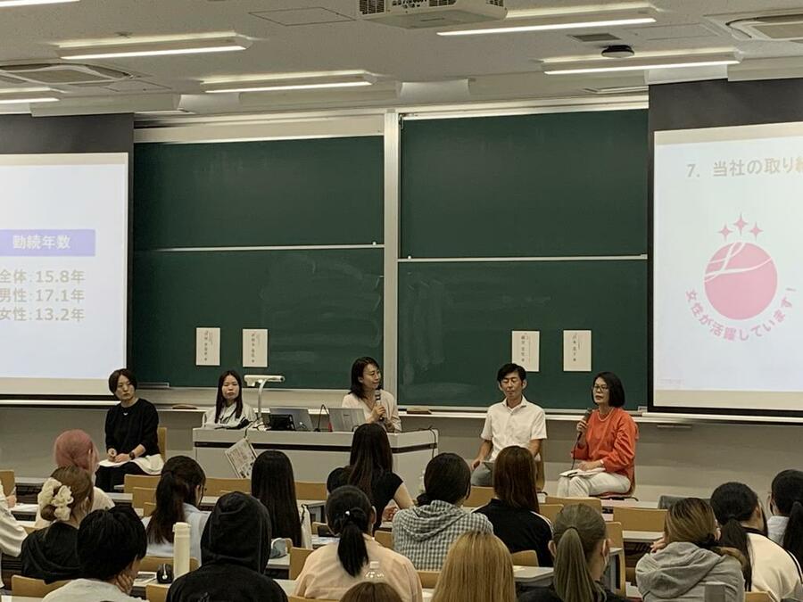 2025年10月1日(水)、名古屋市スポーツ市民局男女平等参画推進課が主催し、名古屋市男女平等参画推進会議イコールなごやシンポジウム「名古屋市女性活躍推進企業と大学生との交流会」が開催されました。人間科学部多元心理学科の学生を中心に、約100名の学生が参加しました。
