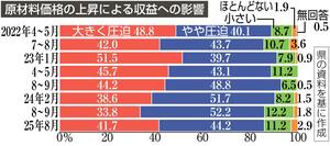 原材料の仕入れ価格上昇による収益への影響について「大きく圧迫」と回答した割合は、前回を7・9ポ...