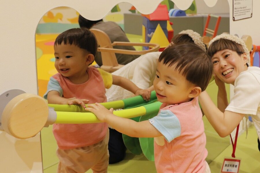 あそび場内は、壁をなくしたオープンな空間で全体の一体感を演出し、木目やアースカラーを基調に可動式遊具で彩りを加えるなど、落ち着きと賑やかさを両立させています。また、異なる床材やベンチ、作品掲示スペースなどにより多様なイベントに対応し、赤ちゃんから学齢期までの発達段階に応じたゾーニングを設定しました。さらに、世界の専門知見に基づいた遊具を導入することで、心・頭・体をバランスよく使う遊び体験を提供します。また、「プレイルーム」内では、ボーネルンドによる子どもの発達とあそびに関する研修を受けた「プレイリーダー」が、子どもの発達や興味に合わせたあそびを提案します。