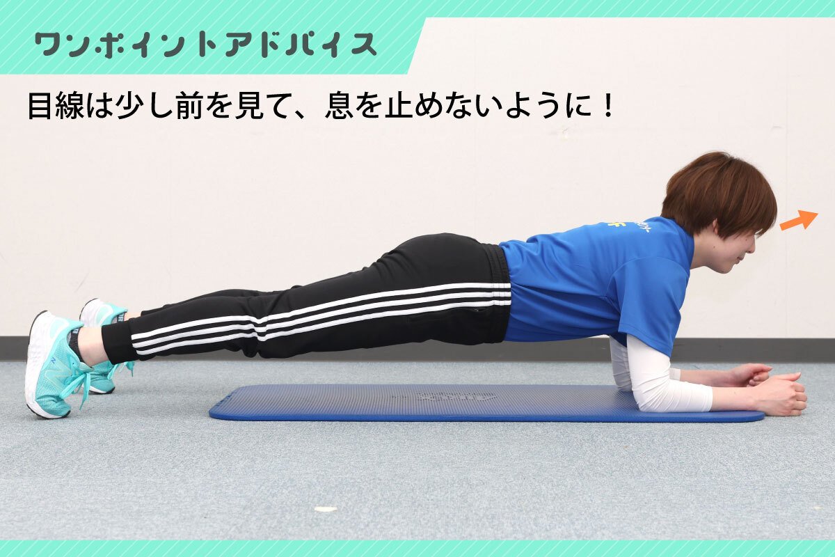 目線は少し前を見て、息を止めないように気を付けましょう。