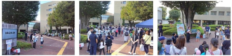 イベント当日の様子(左:ゴール時、中・右:ファミリーの部 表彰式)