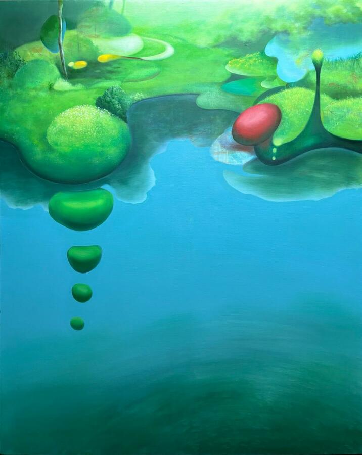 た。本展では新作9点を展示予定です。井手元の描くさまざまな緑が織りなす静謐な世界をお楽しみくだ