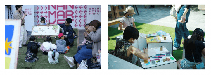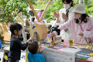 日建設計においては、継続的なJINNAN MARKET開催による関係人口の増加、道路などの公共空間活用実績により、2024年から渋谷公園通地域連携イベント実行委員会主催の大型イベントの企画運営委託を受託しています。大型イベントとJINNAN MARKETを同日開催する形で、地域のアート事業者や子育て支援施設と協働し、さらに地域を盛り上げています。