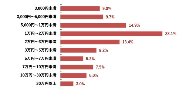 過去1年間の消費額は「1万円~2万円未満」が23.1%で最多。