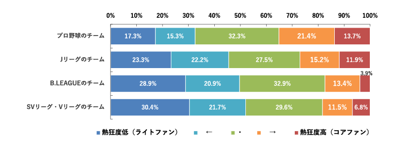 SVリーグ・Vリーグのファン人口の応援の熱狂度別構成比
