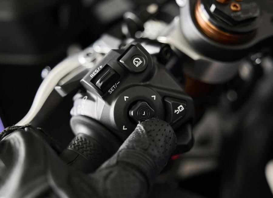 ライダーが自身の好みや路面状況にあわせて、エンジンフィーリングや各種電子デバイスの介入度を選択できる機能「YRC(Yamaha Ride Control)」を搭載。あらかじめプリセットされた3種のパターン(SPORT/STREET/RAIN)の他、2種のカスタマイズ枠(CUSTOM1~2)、またTRACKモードでは4種の枠(TRACK1~4)から、シーンに応じてモード選択が可能です。