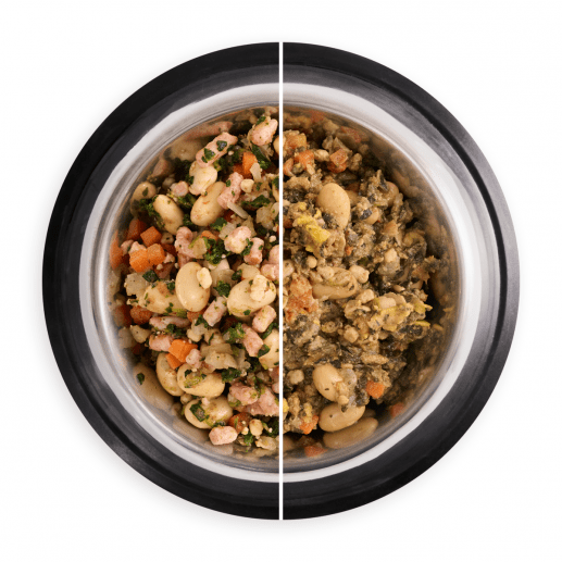 豚肉の良質なたんぱく質と、大根・春菊の食物繊維やカリウムは筋肉維持と消化サポートに役立ちます。活動量の多い成犬やシニア犬の健康維持食としておすすめです。
