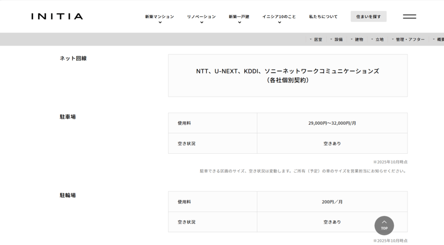 商品詳細ページ 左:駐輪場・駐車場の空き状況等の情報を記載/右:商品コンセプトや特徴を紹介