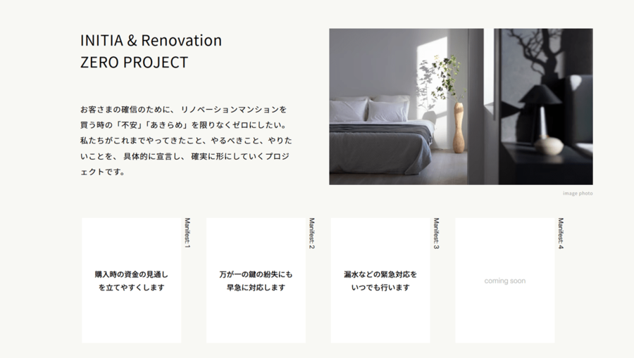 「INITIA & Renovation ZERO PROJECT」詳細ページ