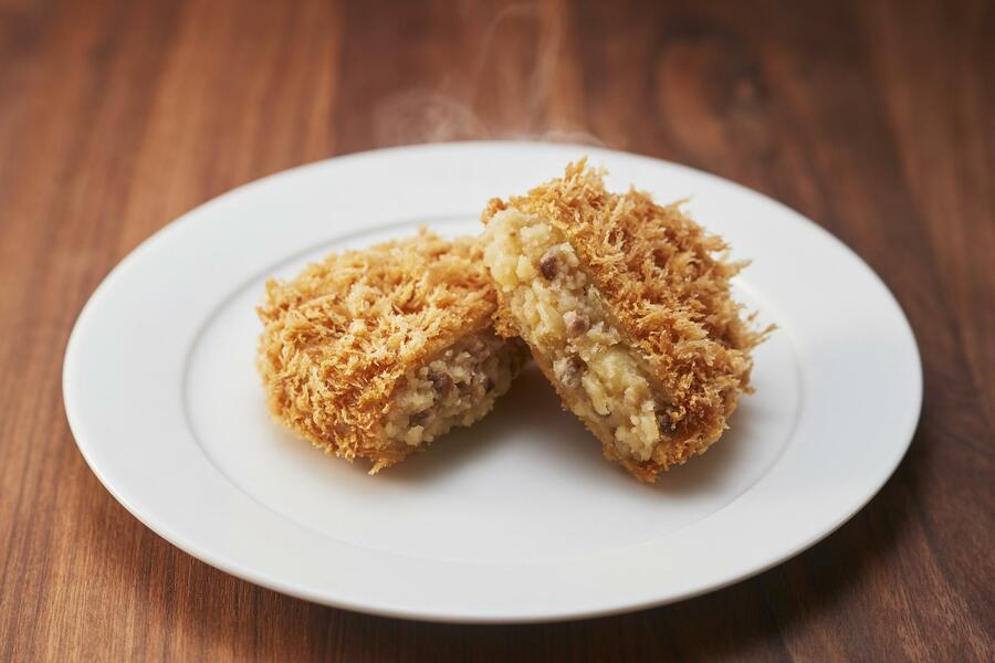 牛肉の旨みを味わえるポテトコロッケ、海老と帆立の旨みと食感を堪能できるカツ、蟹の豊かな風味が広がるコロッケの3種類をセットにしました。