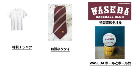 WASEDAボールとボール台、野球部激励会へのご招待、野球部歴史案内 など