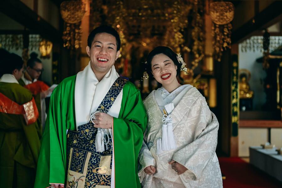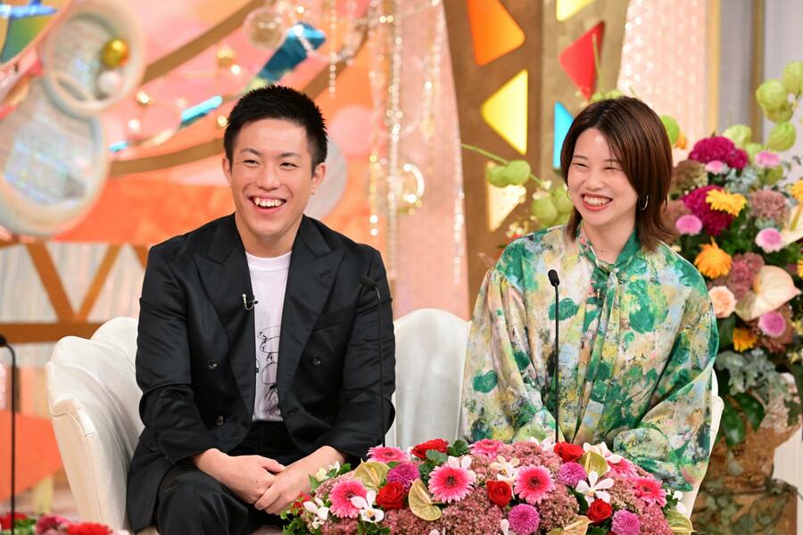 夫妻が結婚したのは、2023年5月。夫は実家のお寺で副住職を務めている。観覧席で妻の弟と母、さらに夫の母が見守るなか、新婚トークが始まった。