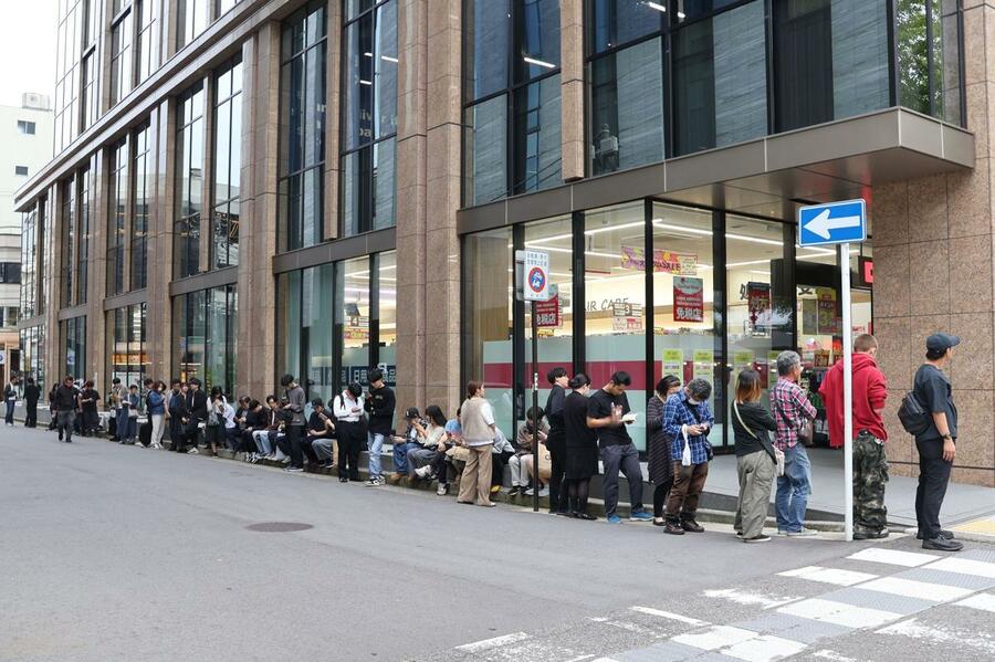 「バーガーキング」の午後の販売に並ぶ人々=10日、新潟市中央区