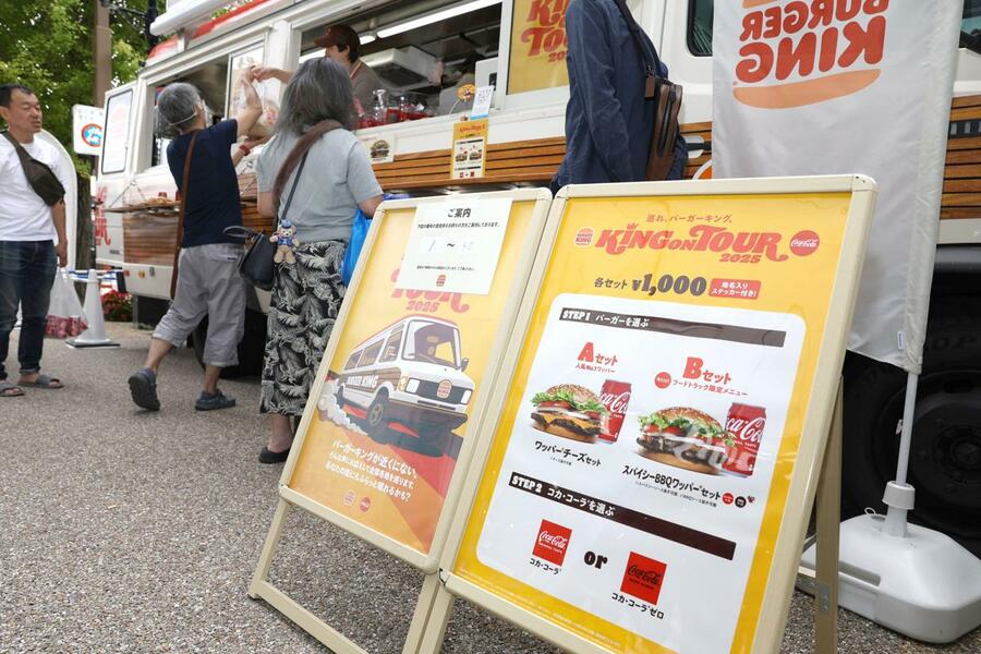 出店したバーガーキングのフードトラック。Aのワッパーチーズセットと、フードトラック限定・BのスパイシーBBQワッパーセットから選んで注文する=10日、新潟市中央区