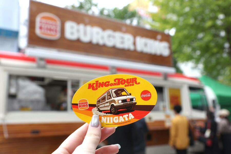 大手ハンバーガーチェーン店「バーガーキング」のフードトラックでの販売が10日、新潟市中央区東大通のJR新潟駅前ストリートテラス「東大通みちばたリビング」で始まった。午前11時から販売を開始し、午前の部に用意した約120人分は10分で完売。午後の部の販売では、並び始めの午後3時から5分で約70人の列ができ、10日分の販売を終了した。