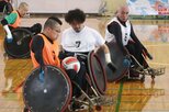 競技のレベルアップと障害者への理解促進などを目的に、日本車いすラグビー連盟が9月27、28日に開いた。全国から男女15人が参加。5人ずつ3チームに分かれ、6試合を行った。