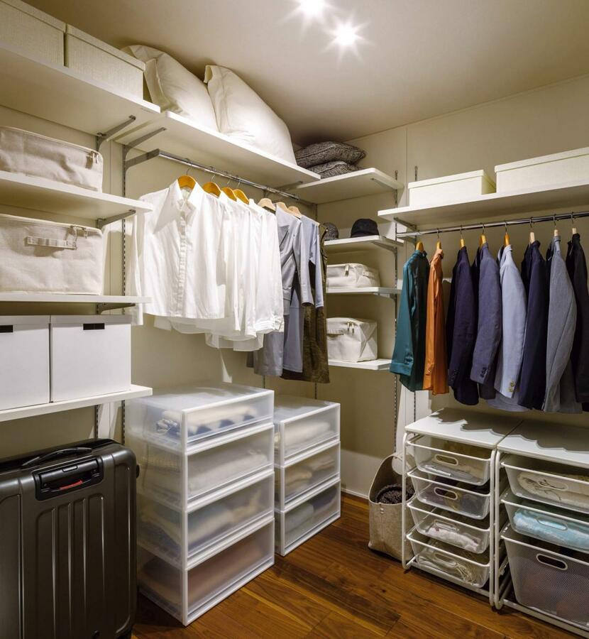 ウォークインクローゼットを収納力だけでなく、おしゃれを楽しむ、便利で楽しいワクワクする空間に仕上げてみませんか。例えば、全身チェックに便利なミラー付の収納扉やドレッサーなどを組み込めば、ドレスアップ、メイクアップがまとめてできる空間に。