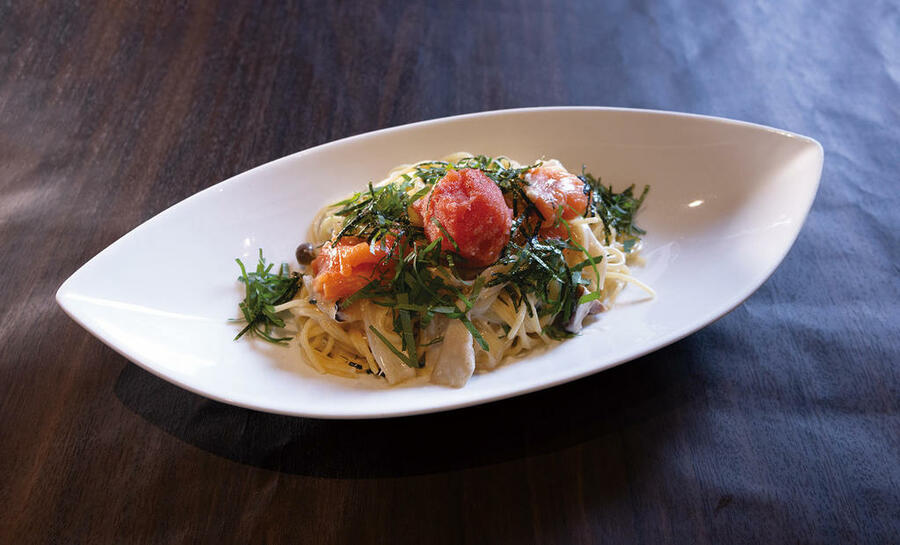 真鱈の切り身を丸ごと使ったオイル仕立てのパスタ。