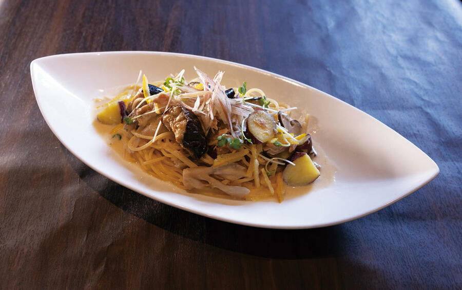 ごろっと入った秋野菜が彩りと食感を添える、季節限定の特製パスタです。