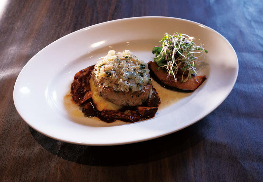 ジューシーなハンバーグに旬のきのこをのせて、みんなご存知の