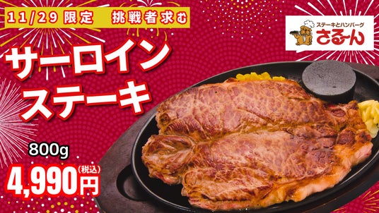 株式会社サルーン(新潟県三条市、代表取締役社長:石丸真太郎)は、ステーキとハンバーグの専門店「ステーキのさる~ん」「石焼ステーキ贅」にて2025年10月1日(水)から11月30日(日)まで、毎年恒例の**「肉祭り2025」**を開催いたします。今年は人気お笑いコンビ タイムマシーン3号 とのタイアップが実現!YouTubeでは、2人が肉祭りメニューを食べ尽くすコラボ動画を公開し笑いとともにおいしいお肉を楽しめる特別企画です。